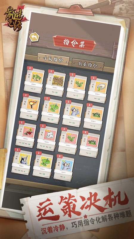 前进之路是款根据红军长征真实革命历史改变而成的卡牌休闲游戏,成为红军长征中的一员,开启闯关冒险之旅。漫漫长征路中,各种艰险磨难都等着你们。玩家不仅需要躲避敌人的追击,还需要面临缺衣少食的危机