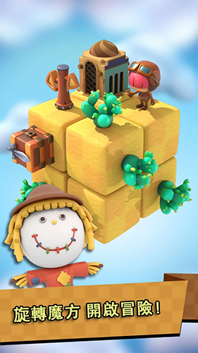 旋转大冒险是一款创意十足的动作冒险闯关类型的游戏,游戏的画面十分的精致卡通,这里有着独创的冒险玩法,玩家每一关都在一个魔方上面冒险,玩家要不断的旋转这个魔方来触发各种各样的事件,非常的新颖别致,旋转魔方来不断的推动剧情的展开