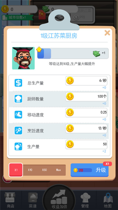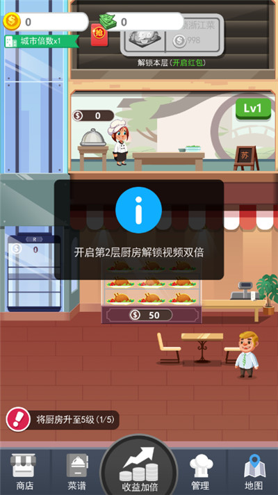 1、你可以升级你的厨具,提升烹饪效率,你可以装饰你的餐厅,吸引更多客人。
