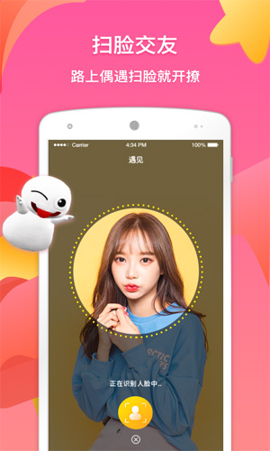 【扫脸交友】遇见感兴趣的人,轻触屏幕中间,启动扫脸,识别对方的小鬼身份