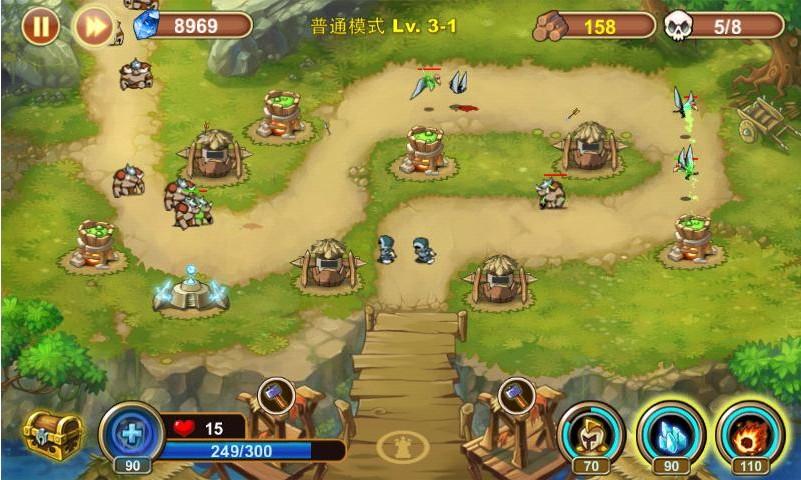 本作的玩法就是定点塔防的玩法,玩家只能在地图上指定的位置建造防御塔,然后点击红色骷髅标志等着迎接一波又一波敌人的侵袭,要求玩家的布局能力更高。