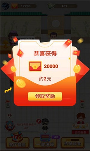 奇妙餐厅是一款真的可以赚钱的红包游戏,玩家将白手起家,通过自己的努力经营餐厅,不断的招募优秀的员工帮助自己,改善餐厅的环境和设施,这些都是完善餐厅的好办法,还可以通过发传单、上广告的方式来吸引更多的顾客,玩起来非常的有意思
