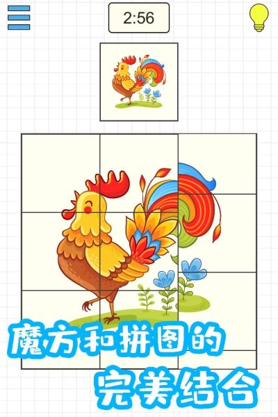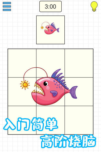 游戏的目标是把打乱的方块拼按顺序拼好,当所有的方块都移到正确的位置上,拼图就成功了!