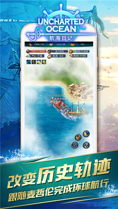 《航海日记》是一款海战题材的RPG冒险战斗游戏,玩家在游戏中将扮演一名极富策略谋划的航海家,置身于一望无际的海洋之上,踏上了未知的冒险航海征途,前方会有怎样的际遇,亦或是怎样的危机呢?跟随者史学航海家的麦哲伦的踪迹,探索未曾有人涉及的神秘海域,发现人类的新大陆。