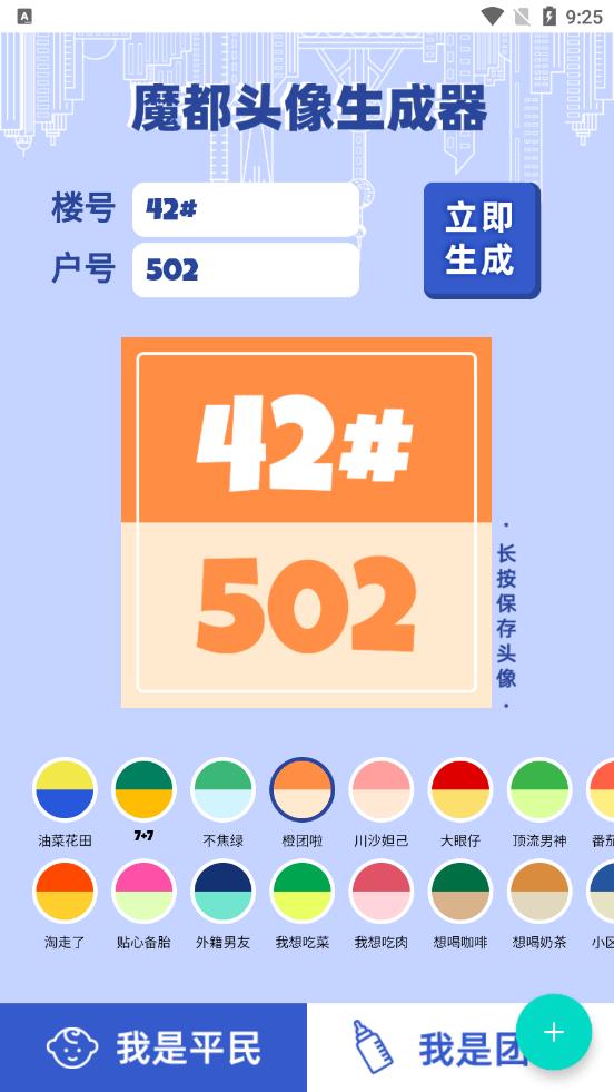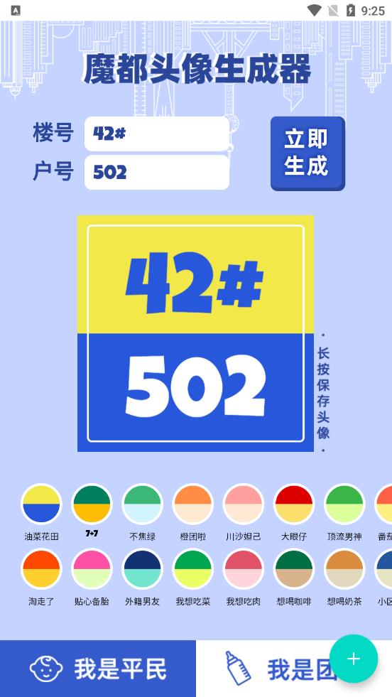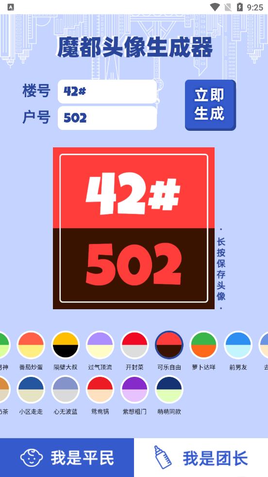5、一款头像生成器工具软件,可以用不同的颜色标注自己的门牌号和团长名号