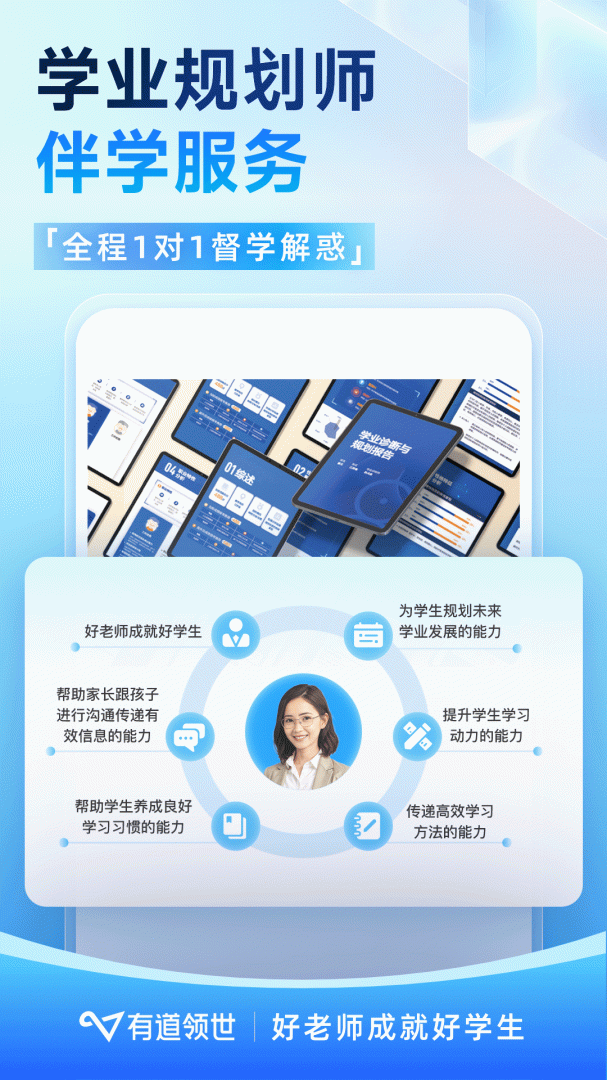有道领世是一款在线教育学习平台,平台拥有丰富的学习内容,拥有学情诊断,个性化督学等等功能服务,可以帮助用户更好的学习提升自己