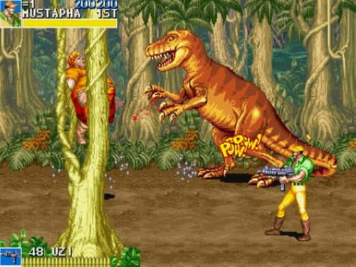 《恐龙快打》是一款以暴打恐龙为题材的动作冒险类街机游戏,游戏舞台设定在人类与恐龙共存的26世纪,这里的恐龙泛滥成灾,为了限制恐龙们的暴行,一行四人踏上了歼灭恐龙大军的征途,游戏中的道具拥有非常强的作用,而且所有的枪械都有弹药概念,合理使用这些道具和枪械将帮助你更轻松的过关