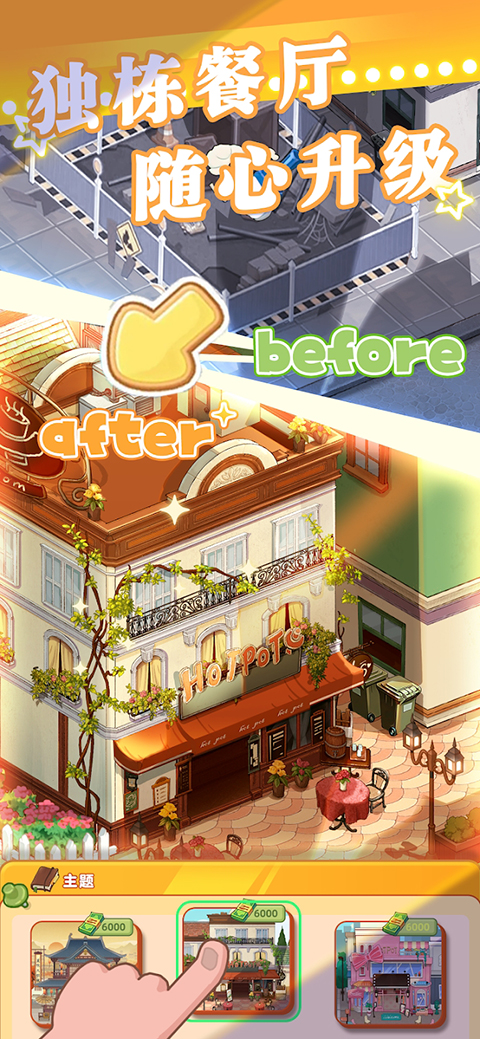 在这款游戏中玩家是一个爱吃火锅的美食家,有一天玩家突然决定要开一家火锅店,争取努力成为全镇最棒的火锅店,想要增加热度就要加入一些不同的设备,优良的环境才能够更让顾客们喜欢。