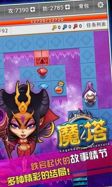魔塔是一款根据之前的魔塔游戏改编的冒险解谜类的手机游戏,和一样,玩家在游戏中扮演的是解救公主的勇士,玩家需要通过层层关卡打败每一层的怪物最后救出公主
