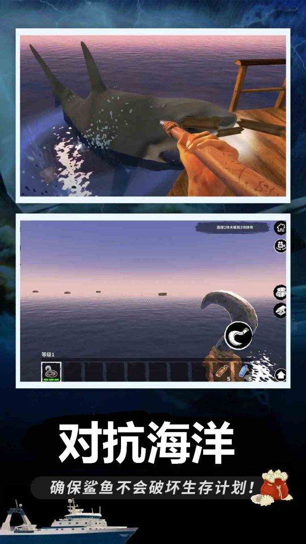 木筏生存是一款惊险刺激的手机游戏,你将扮演一名意外被困在无边海洋上的幸存者,只有一艘简陋的木筏作为你的唯一庇护所,在游戏中,你需要利用周围的资源如木材、食物和水源来维持生存,你还要小心海洋中隐藏着的各种危险,如鲨鱼、海盗和恶劣天气,你可以通过探索岛屿、搜寻沉船等方式寻找更多的资源和逃离这片孤岛,你还可以改良你的木筏,增加其稳定性和安全性,挑战你的生存技能,展现你在荒凉大海上求生的智慧和勇气,完成任务和解锁成就也能让你获得更多的奖励和提升角色技能,快来体验这个令人充满紧张刺激的木筏生存之旅吧!