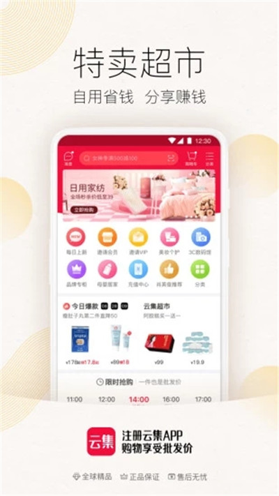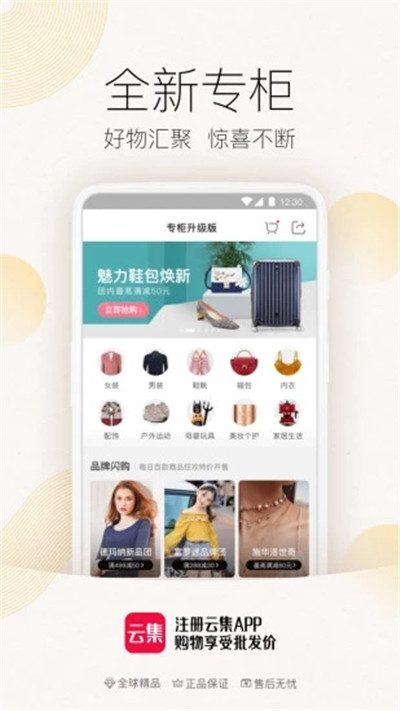 1.正品保障:云集与品牌方或大型贸易商合作,采购流程层层把关,正品直采,只做放心货源。