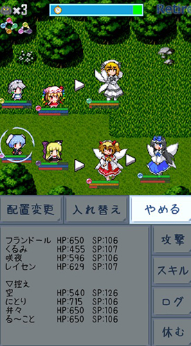 1、游戏中使用了经典的ff风格的水平rpg。玩家将控制来自东方系列的人物,在手机上展开全新的战斗