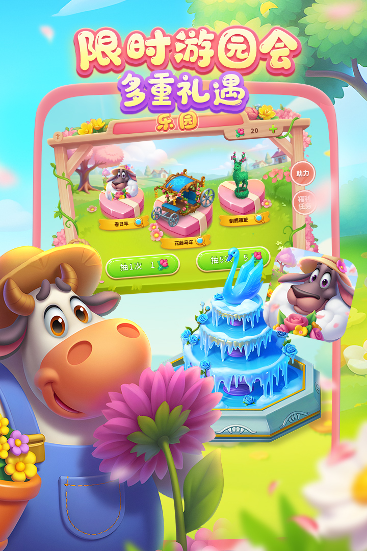 3、新增 乐园春日主题装饰物【花藤马车】【驯鹿雕塑】