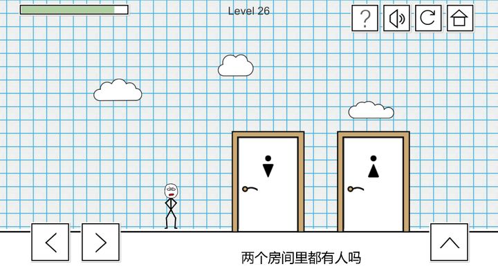 第26关:按住右边那扇门的门把往下拖就能看到马桶,之后向右走即可过关