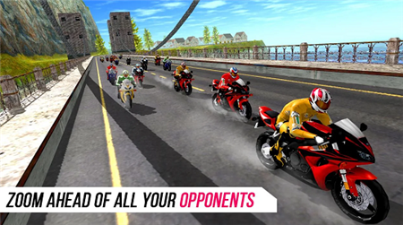 一款3D画质的摩托车竞速手游。玩家可以驾驶摩托赛车,躲避各种地形或者车辆,疯狂加速超越对手,赢得比赛的最终胜利,还可以挑战不同的赛道,玩起来非常爽快