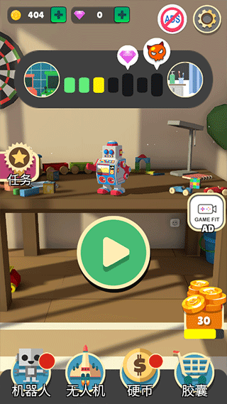 你需要用你的技能去打败不同的敌人,用不同的战斗技能去取得胜利,逐渐变强去打败不同的对手,不断变强成为最好的机器人。