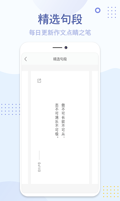 3.更收集了各种名言名句,精选句子,写作素材。让你写作锦上添花,观赏性和阅读更强!
