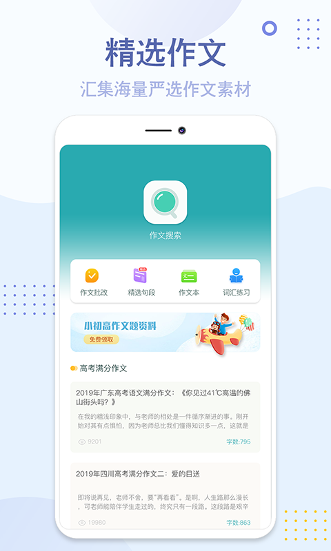 神笔满分作文包含所有发表的小学作文、初中作文、高中作文、满分作文、纸条、笔神作文!满足k12不同年级段的学生作文写作指导的需求。同时搜索功能可以根本不同的关键词在十万篇作文库里面搜索所需要的作文。