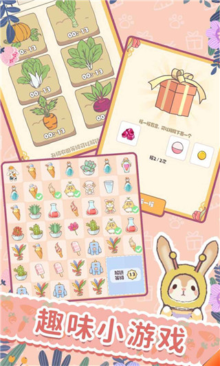 兔兔音乐会是非常治愈的休闲游戏,有着十分可爱的画面风格,玩家将会通过种植各种植物来获取金币,为兔兔进行装扮,使用乐器来进行演奏,玩起来还是很有意思的,喜欢的小伙伴快来下载试试吧
