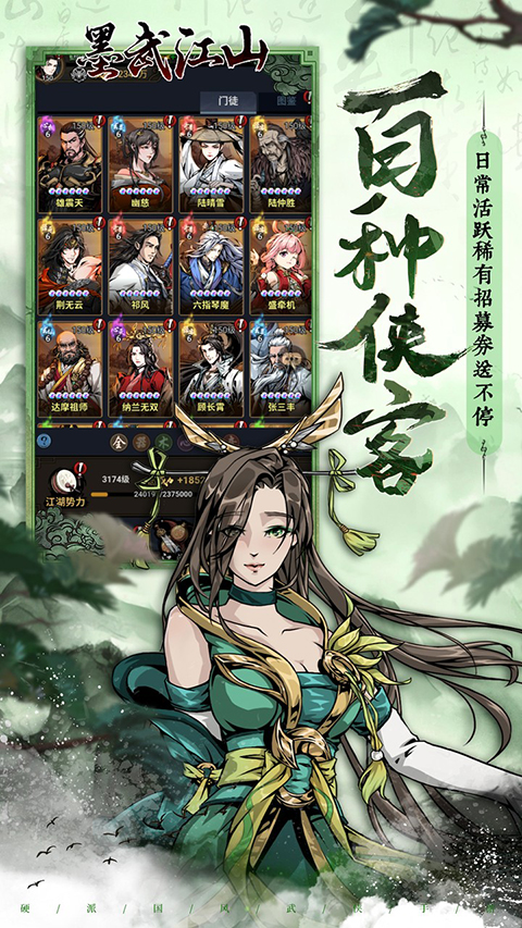 墨武江山是一款充满江山豪情的ARPG手游,墨武江山在这里你讲体验到最刺激最激情的武侠风情,海量战斗玩法,多样精彩副本,纯正还原原味江湖,在不断完成任务、参与各种战斗中提升实力,升华自己,从一个江湖小虾米成长为人尽皆知的江湖大侠!感兴趣的玩家玩玩不要错过