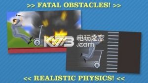 4、玩家将控制一名角色驾驶一辆独轮车,利用独轮车行动来越过各种障碍达到终点。简单一句话概括了游戏的全部内容,但是这其中的内容却蕴含了许许多多的陷阱。也许天空中会突然落下一辆车来砸你,也许地面上平凡无奇的路会突然加速升高将你夹死,也许半空中飘飞的东西是炸弹。