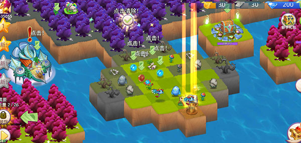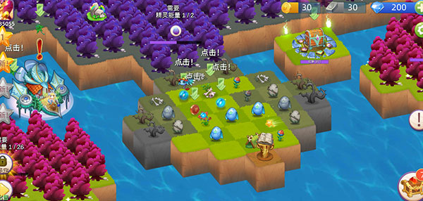 3、精灵不断地采集生命之花生成能量球,点击能量球可以治愈土地,也可以合并成更高级的能量球,治愈面积更广。