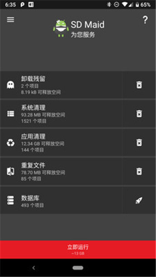 sd女佣是一款管理应用程序和文件的工具。比如:应用程序被卸载后,有时会留下不需要的数据;系统经常会生成您并不需要的日志、崩溃报告以及调试文件;无用的文件、不明所以的目录,无时无刻不在占用您的存储空间。SD Maid都将帮助您保持设备的干净整洁!