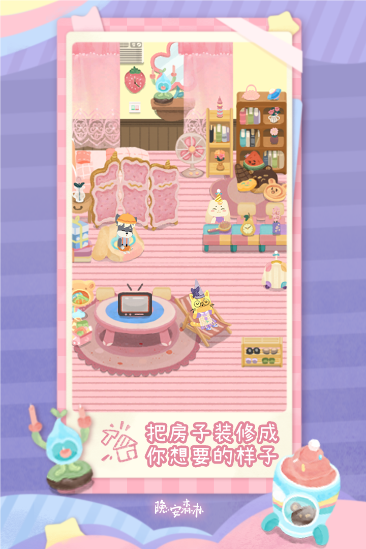 晚安森林是一款拥有小清新画风的休闲治愈手游,通过晚安精灵,聆听轻松的旋律,这是专门助你入眠的沉睡世界。你需要照顾这些可爱的晚安精灵,你还能够更换精灵的衣服,并且替他们装饰一些超级可爱的小饰品哦