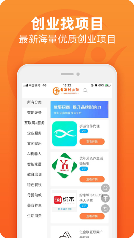 青年创业网是一款创业app,软件上有十分丰富的项目可供你参与,海量的行业最新资讯可随意查看了解,帮助用户更好的了解市场行情,这里还有创业资料,创业课程可以学习,让你的创业之路更加稳定,感兴趣的快来下载体验吧