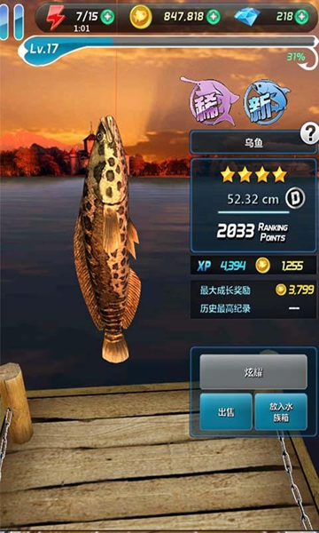3、要钓起足够大的鱼,就需要玩家不断的升级渔具