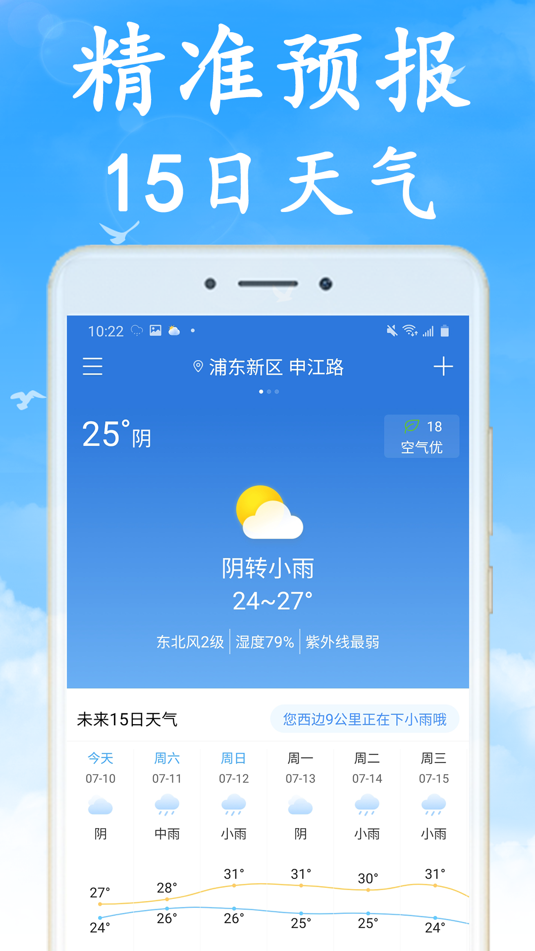 全国实时天气预报app精准预报全国所有城市地区天气预报,实时发布全国所有城市空气质量,为您的生活出行带来前所未有的便利!