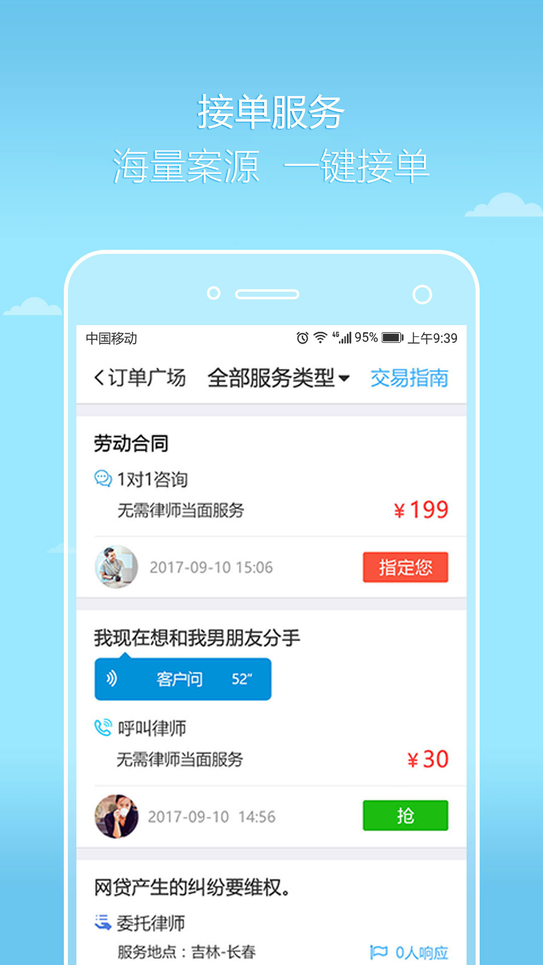 律师可以在线接受客户的订单;