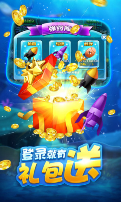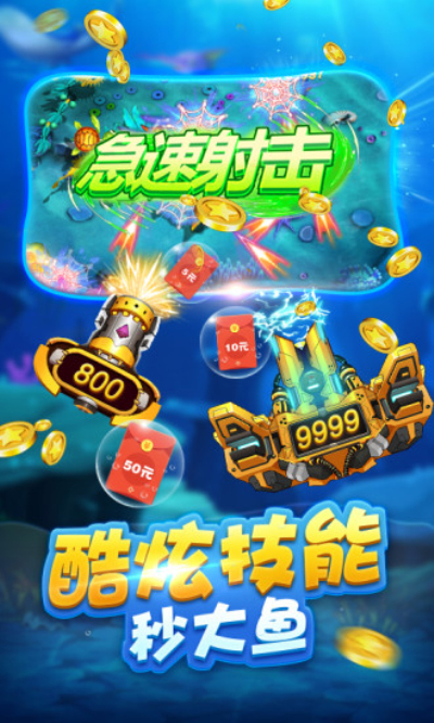 3、设有多样的鱼类和关卡,玩家需要根据鱼类的特点和习性,选择合适的捕鱼技巧和策略,才能成功捕获。