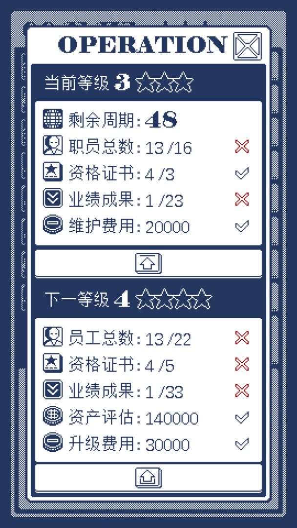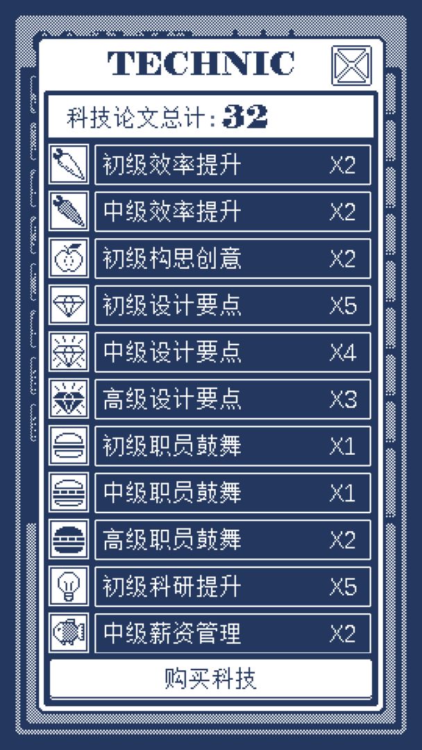 玩家除了要完成一些可选的接单项目维持生计外,还要应付每个季度的强制性终极项目。面对不断提升的项目工作量和紧迫的项目周期,玩家需要不断地提升生产力来进行适应。