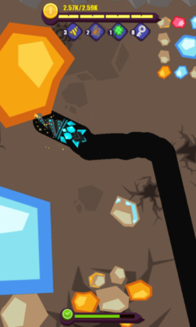 《挖掘大师》是一款玩法和操作都非常简单的休闲游戏,你只要操作你的钻头,挖掘、粉碎足够多的金矿钻石矿,收集金钱达成目标,就可以一步步走向人生巅峰,获得亿万富翁的成就称号。