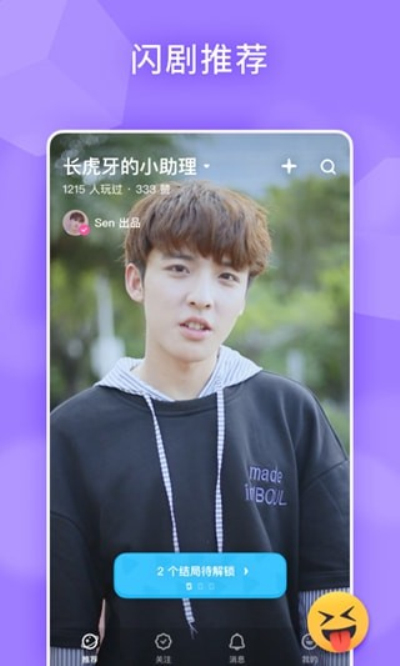 闪剧不仅能看还可以互动,每一部剧给你和主角设定一个角色,每一次互动都会获得不同的好感度、亲密度、角色属性的及时反馈,分值将影响故事结局。