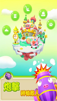 在猪来了的游戏中,玩家主要消耗能量转动转盘来获得金币。转盘有很多种奖励,比如炮击朋友,获得盾牌来防止炮击,偷朋友的金币。主要的玩法是在通过转盘赚取金币后建造一个更高级别的岛