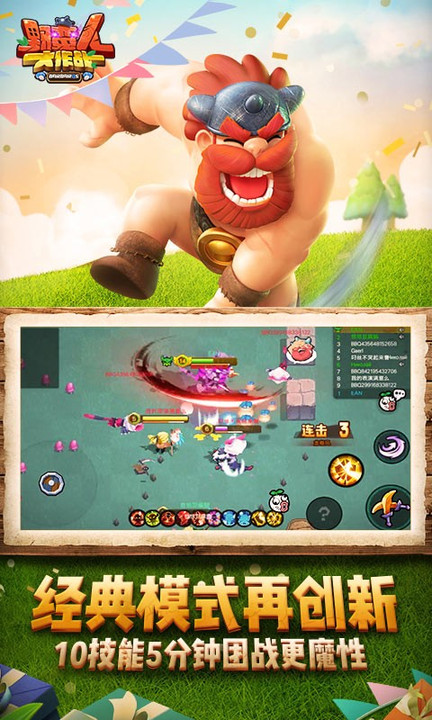 采用了创新的对战模式,玩家可以控制自己的小野蛮人在热血激烈的对战中与其他玩家展开殊死搏斗。