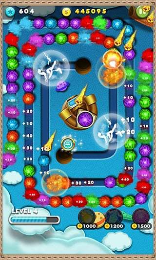 开心祖玛游戏是一款操作十分简单十分休闲的闯关游戏,采用的是经典的祖玛规则玩法,你需要在关卡中发射你的彩色小球将相同颜色的小球达到三个或者以上就可以进行消除获得积分,轻柔舒缓的背景音乐让你玩的更沉浸,而且游戏的关卡十分的多样