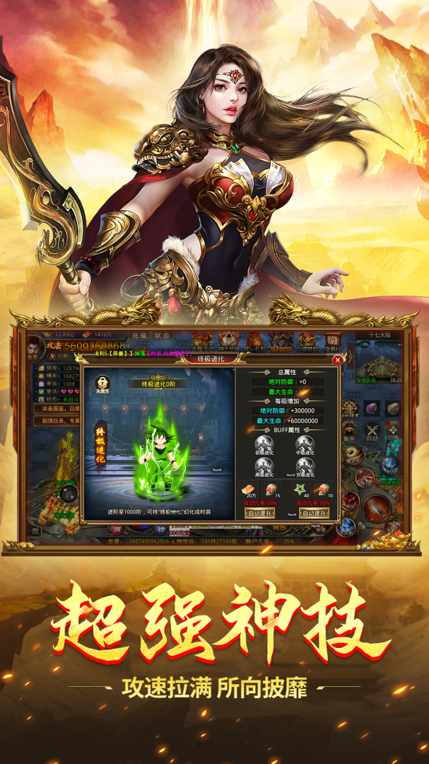 3、购买更完美的套装能让你的战斗力突破,轻松的就能前往更刺激的副本中参与热血的战斗