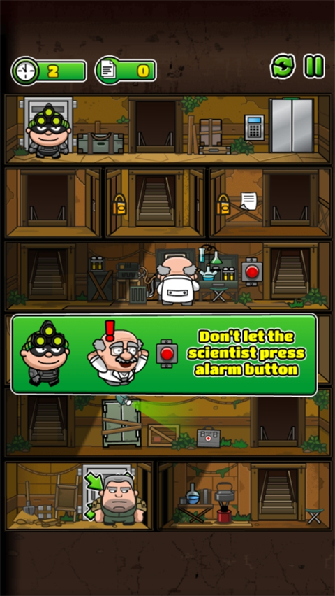 一款益智闯关游戏,画面粗中带细,讲述被追捕的逃犯在躲避追捕的同时,挨家挨户收刮战利品。神偷鲍勃先生被神秘人物救出后又被胁迫去偷取各种物品。游戏采用俯视视角,虚拟摇杆操控,配乐声效都恰到好处