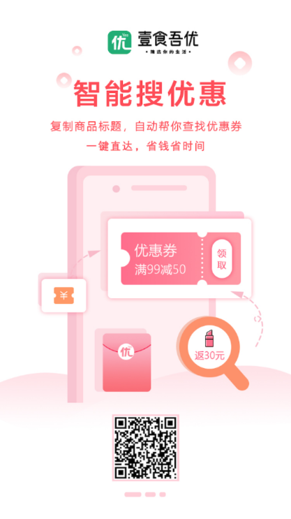 壹食吾优是一个分享优惠商品的软件,拥有智能搜优惠券的功能,一键直达,快速领劵,节省找优惠券的时间