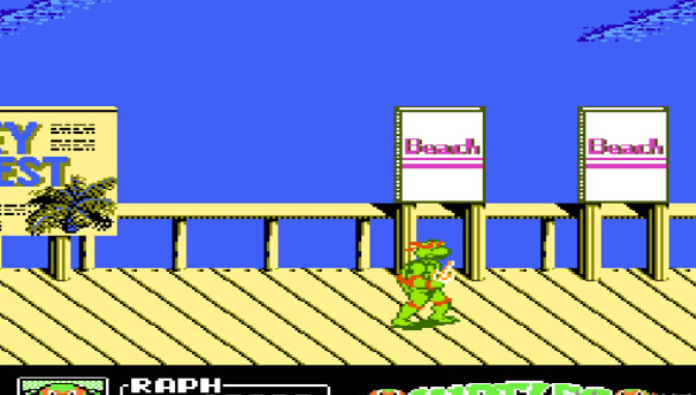 忍者神龟3是FC红白机上的一款经典游戏,是根据同名动画改编的一款大作。比起前两代作品,人物操作更加顺畅。在本作中,四个神龟多了一个绝招,不过平时用的话会扣除一颗血,当人物剩下最后一颗血的时候,那么绝招可以无限使用