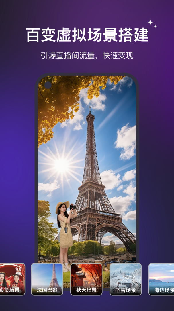 直播魔盒是一款直播助手软件,用户可以通过直播魔盒搭建直播间,app提供上千种背景、视频,动态贴纸,氛围音效,让你的直播更加有效