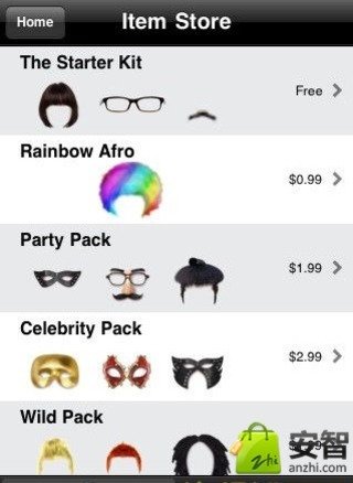 4、下载各种有趣的发型、眼镜、面具,以及胡须等,你将可以随意添加到你的头像上