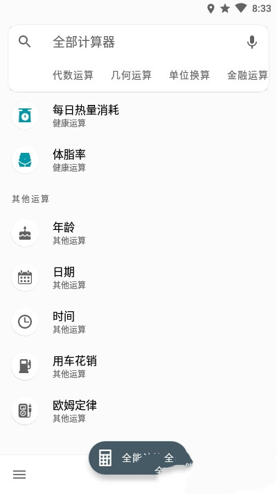 全能计算器去广告版是一款免升级去广告可以免费使用的科学计算器工具,提供了代数运算、几何运算、单位换算、金融运算、健康运算等功能,可以解决各种计算和换算问题,比系统自带计算器更好用