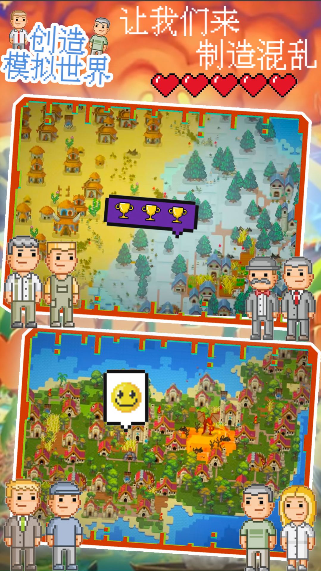模拟沙盒类型的冒险游戏,游戏之中玩家将会扮演上帝,游戏有着丰富的道具可以供玩家来进行使用,整个世界的发展方向都由玩家掌握,像素风格的游戏画面,丰富的玩法,趣味十足。