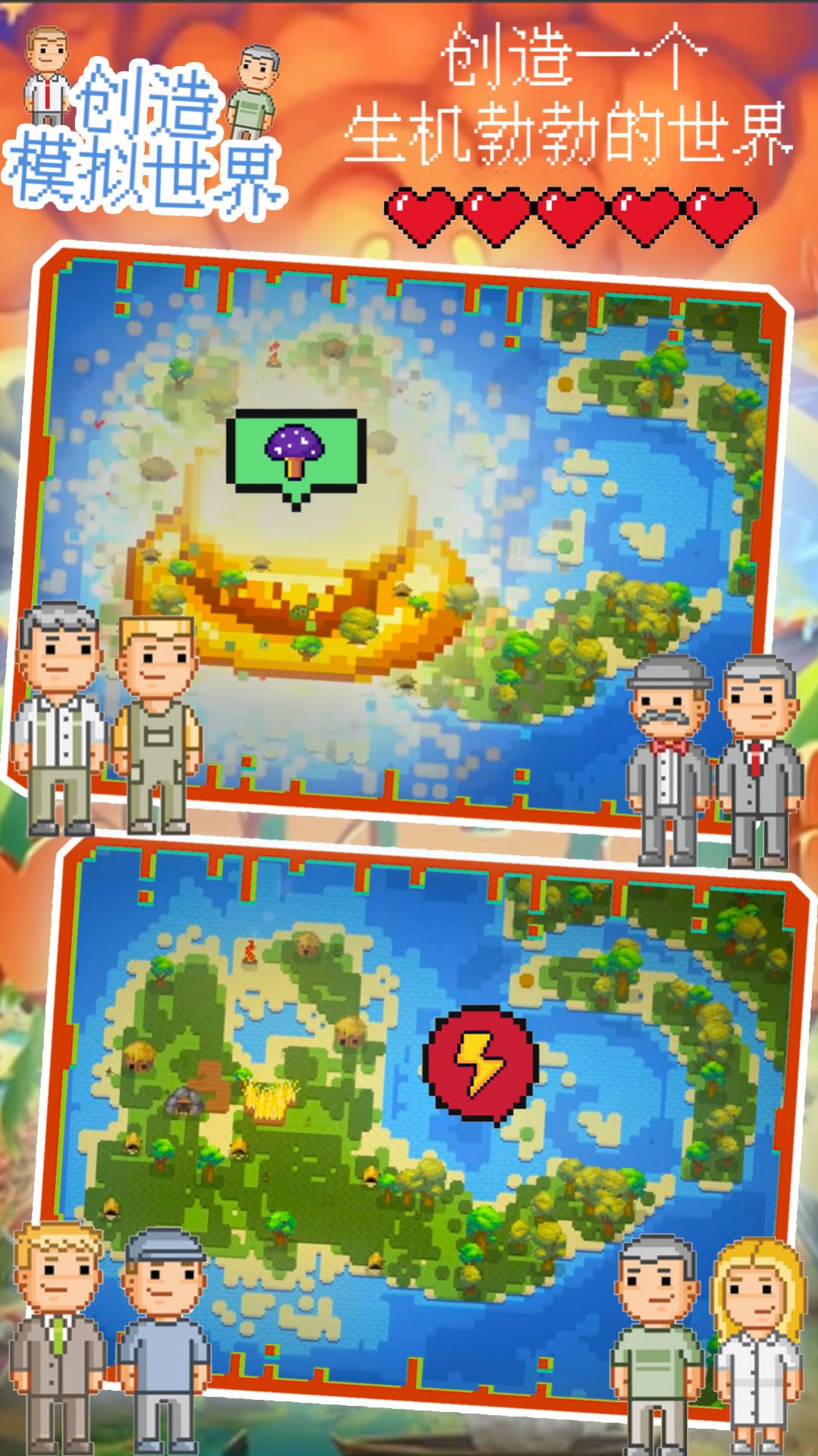 创造模拟世界,全新像素建造模拟游戏。玩家扮演上帝角色,解锁新的地图星球,创造文明,收集树木动物等资源,一步步填充你的星球,发展独有的星球文明吧