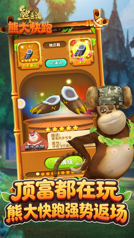 授权《熊出没之熊大快跑》两周年啦!经典巨制,传奇延续!国民级经典跑酷,高度还原动漫,唯美场景极致高清,全新玩法惊喜上线!