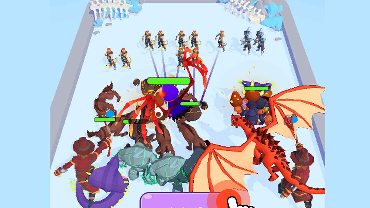 滑动双指合并士兵,提高战斗力,不断闯关获得魔法墨水来召唤出更强的神兽就可以所向披靡!